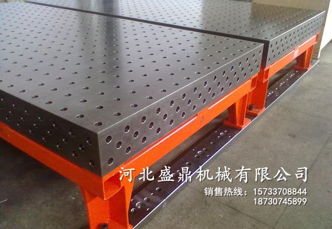鑄鐵焊接平臺用于機床、機械、檢驗測量,檢查零件的尺寸、精度、平直度、平行度、平面度、垂直度和形位偏差并作精密劃線。鑄鐵檢驗平板經穩定性處理和去磁后,即進入機加工,分為粗刨、精刨。精刨是_鑄鐵檢驗平板3級精度和表面粗糙度的一道工序,2級以上精度鑄鐵檢驗平板_人工刮研,以_平板的幾何精度,對已合格的鑄鐵檢驗平板應避免熱源的影響和受酸堿的腐蝕。高精度的鑄鐵平臺應放置在20℃±5℃的恒溫處。在使用過程中應避免因局部磨損過多、劃痕和碰傷現象,而影響平面精度和使用壽命,鑄鐵檢驗平板的使用壽命在正常條件下應是長久性的。使用后應清洗干凈,搞好防銹工作,以保持使用壽命。